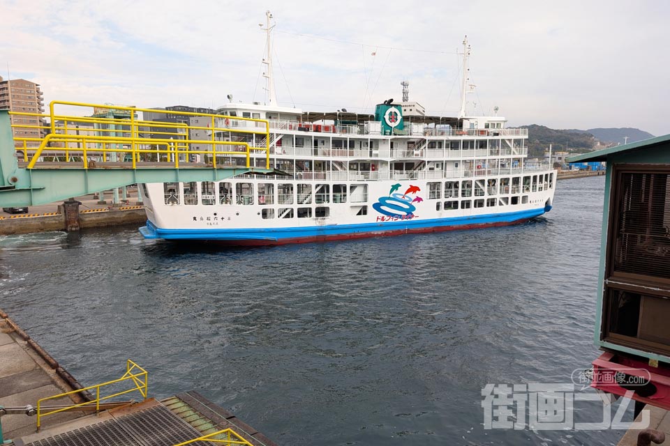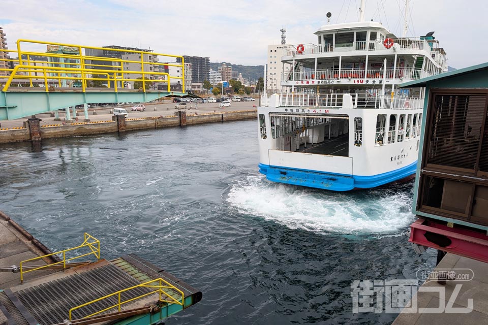 先ほど鹿児島港に到着したばかりのフェリーが、降船場所からこちらの乗船口へとゆっくり移動してくる。