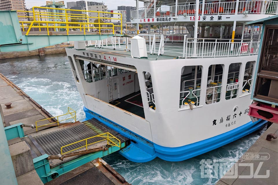 約15分の船旅を終え、フェリーは鹿児島港フェリーターミナルへ到着する。