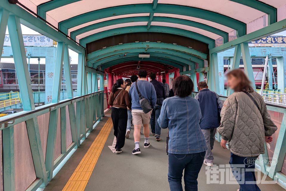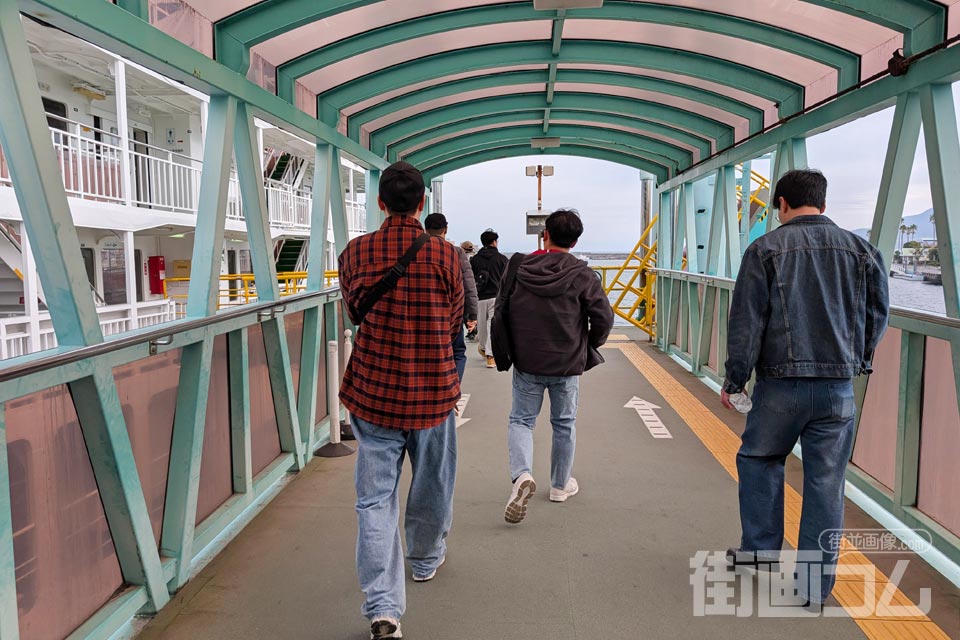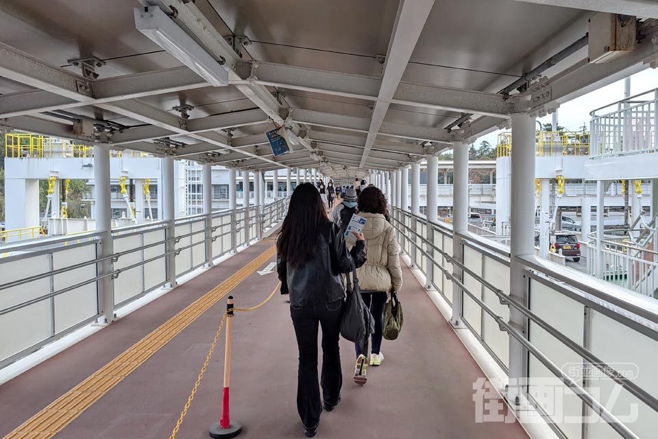 人の流れに続いて連絡通路を渡り、フェリーターミナルの建物へと向かう。