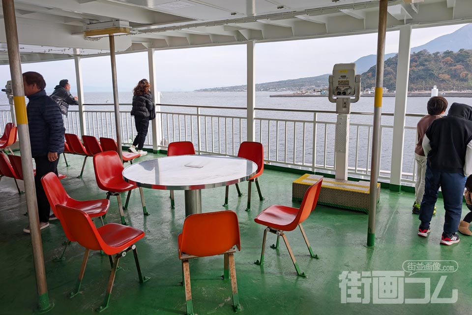 その流れに続いてフェリーへ乗船する。ここから約15分の船旅で桜島へ向かう。