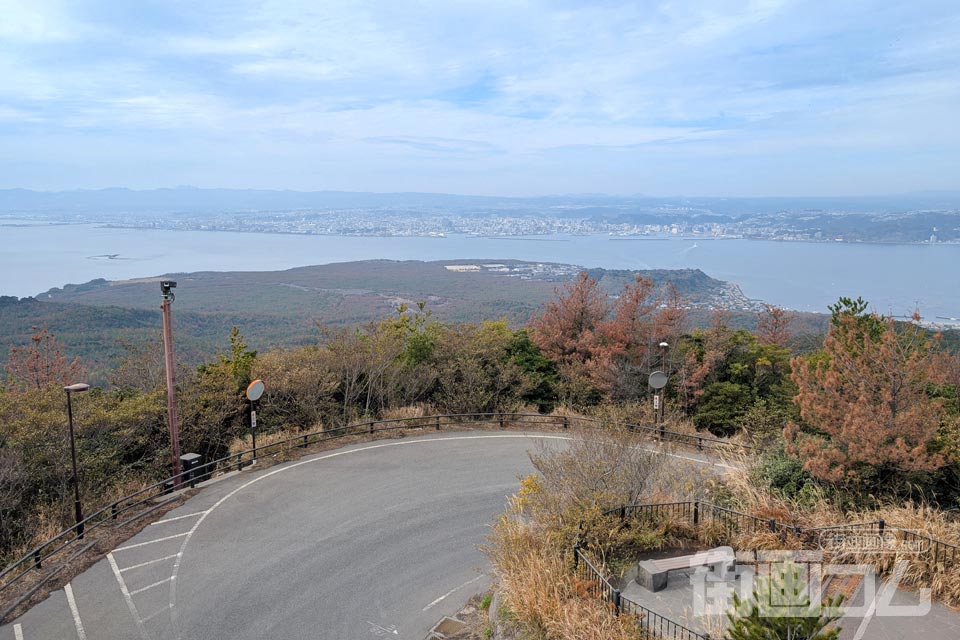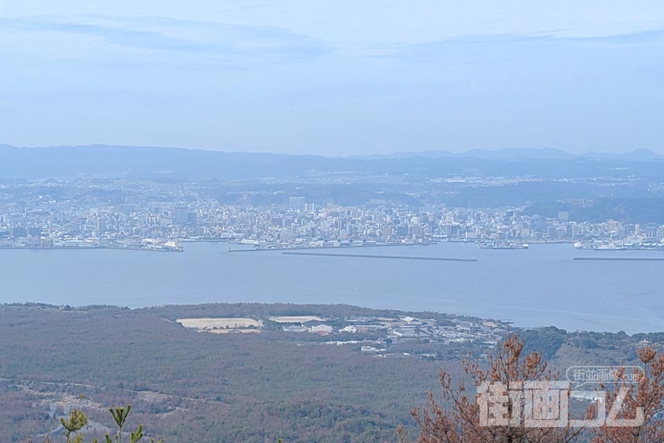 山側とは反対側には、錦江湾と鹿児島市街の大パノラマが広がる。