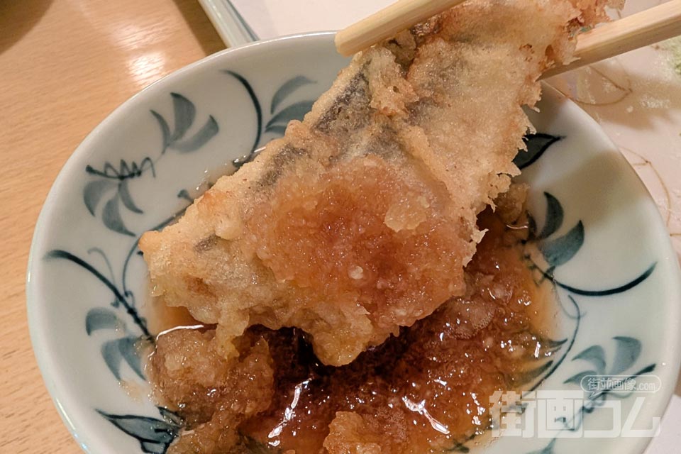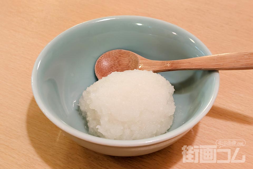 さらに、大根おろしもたっぷりと用意されている。これを天つゆに加えることで、揚げたての天ぷらをさっぱりと味わうことができる。