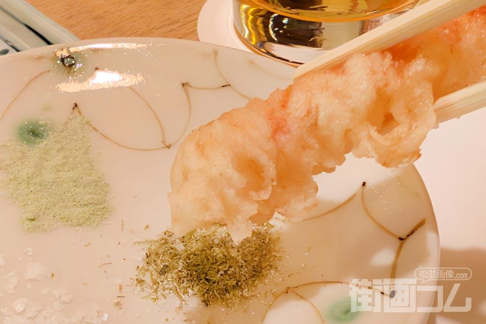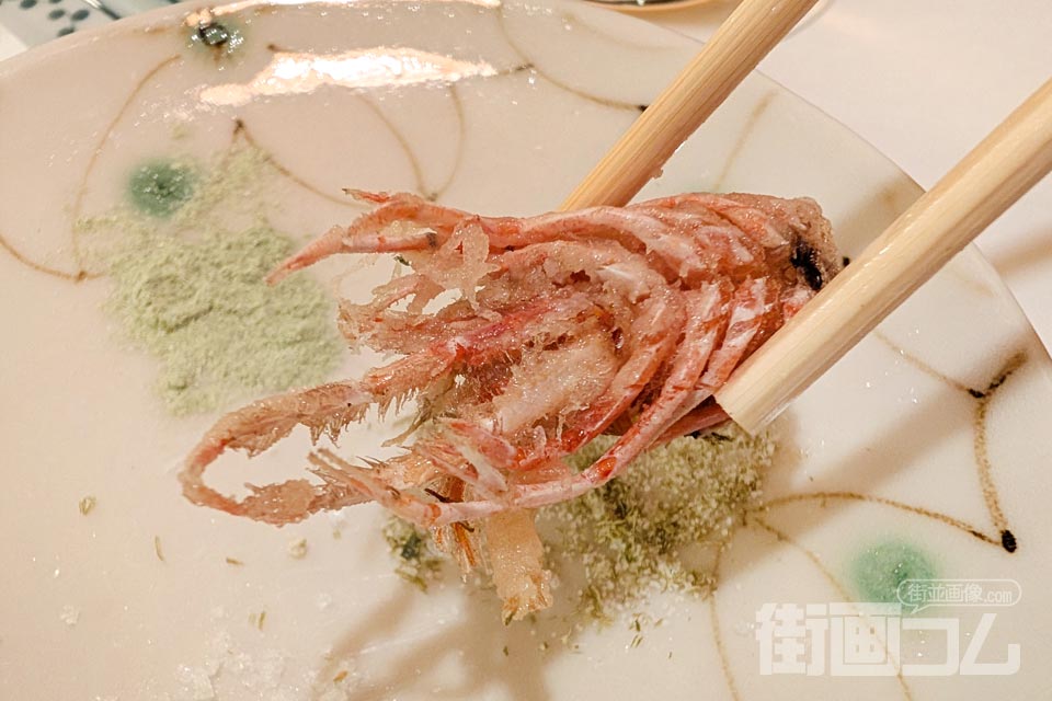 車海老は、ぷりっとした身はもちろん、カリッと揚げられた足まで余すことなく楽しめる。