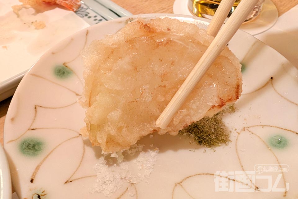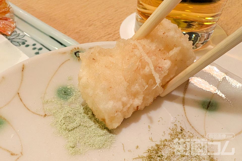 揚げたての穴子は、衣はサクッと軽やかでありながら、中は驚くほどふっくら。ひと口頬張れば、やわらかな身がほどけるように広がり、上品な旨みがじんわりと広がっていく。