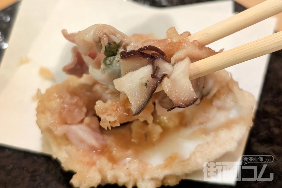どうやって食べるのかと少し戸惑いつつ、箸でそっと崩してみると、中にはハマグリの身と椎茸が仕込まれていた。口に運べば、旨みがじゅわっと広がる贅沢な味わい。旬の食材ならではの魅力が詰まった一品だった。
